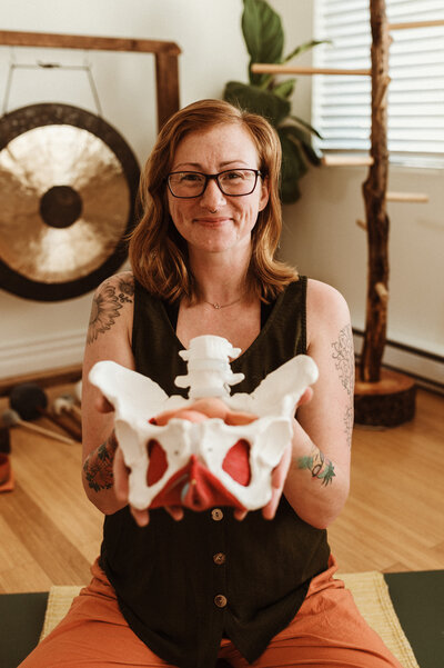 My approach is gentle, educational, and deeply empowering. I blend yoga, corrective movement principles, embodied anatomy, and breath mechanics to help you build strength and confidence in a way that actually feels good.